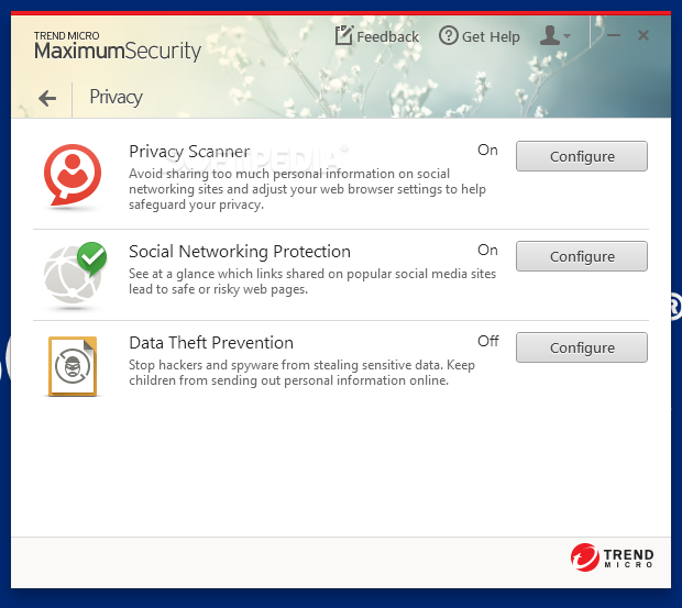 Trend Micro Maximum Security also protects your privacy on social networks while also offering parental controls for your devices. Maximum security also optimises your system performance.